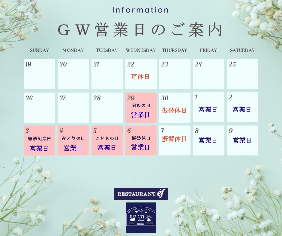 2026年GWのレストラン営業について 執筆者 efzone | 4月 22, 2026 | Uncategorized | コメント0件 皆様のご来店お待ちしております♪ コメントを送信 コメントをキャンセルメールアドレスが公開されることはありません。 ※ が付いている欄は必須項目ですコメント ※ 名前 ※ メール ※ サイト 次回のコメントで使用するためブラウザーに自分の名前、メールアドレス、サイトを保存する。 上に表示された文字を入力してください。 Δ